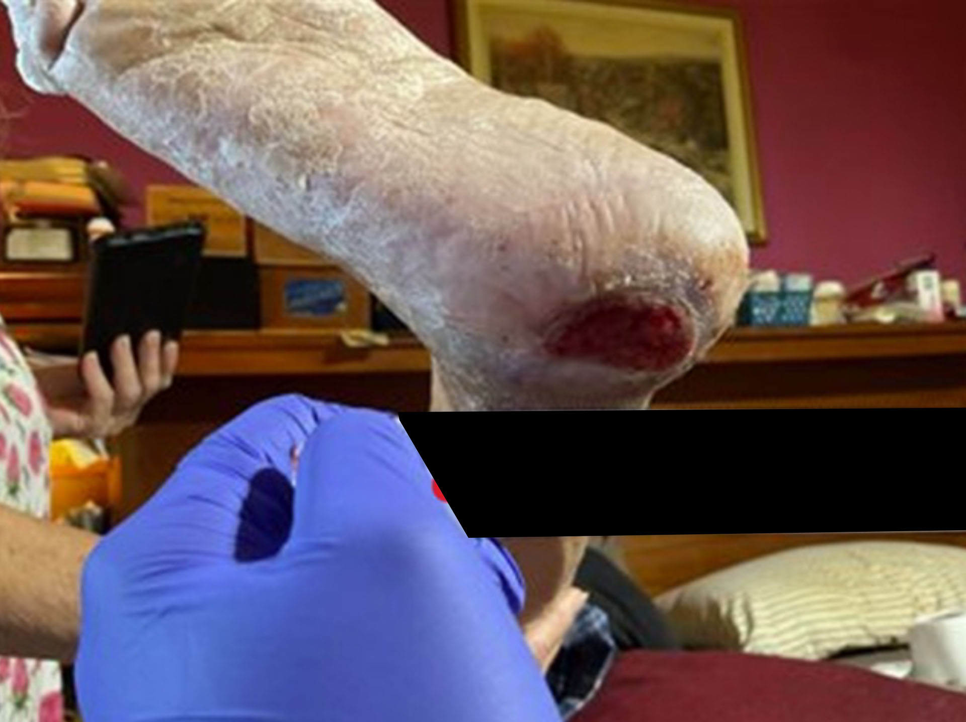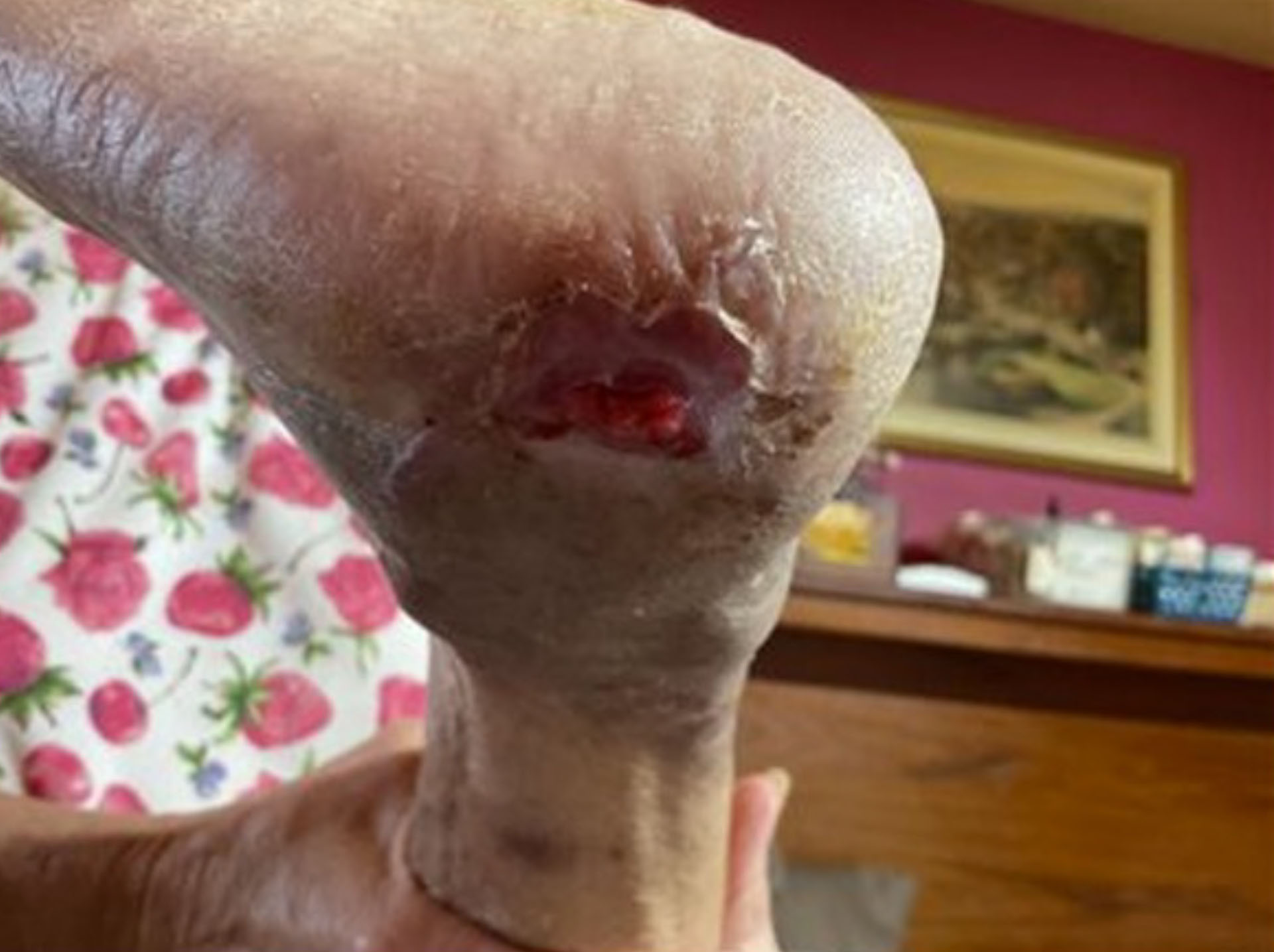 A 68-year-old male with a complex medical history, including end-stage renal disease (ESRD), mixed hyperlipidemia, hypothyroidism, chronic pain syndrome, and a history of cigar smoking, became wheelchair dependent following a recent aortic valve replacement and subsequent skilled nursing facility rehabilitation. In April 2025, while self-propelling his wheelchair, the patient developed a Stage 3 pressure ulcer on his right heel. He presented on 6/18/25 with an eight-week-old, non-healing ulcer.